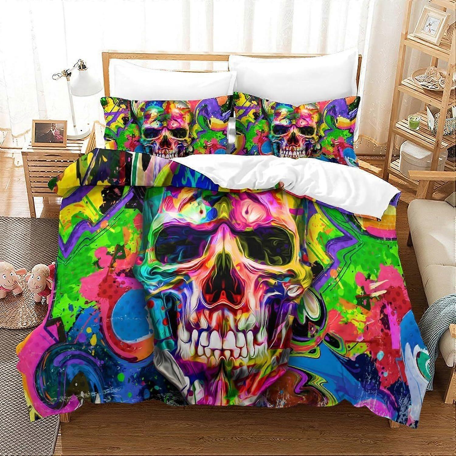 k359 Colorful Skulls Duvet Cover Set Bedding Set 3D Comforter Cover Bed Set Bedroom Decor 3Pcs All Season Bedding with Zipper Closure Soft Room Decor