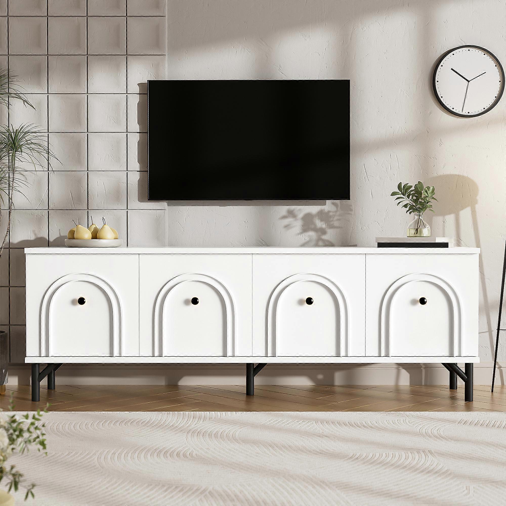kasheman modern white TV stand,arched stripes, 4 doors,160cm × 38cm × 55.5cm