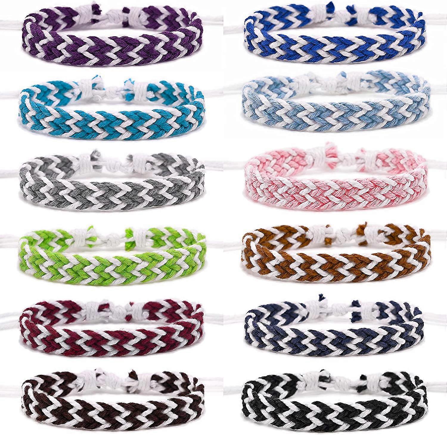 KATEA 12 PCS Neutral Bracelet Friendship Bracelet Cotton and Linen Hand-Woven Bracelet Adjustable Size 6-11 Inches