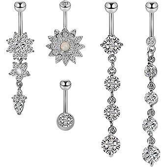 Katea Dangle Belly Button Rings Surgical Stainless Steel For Women Girls 5 Pcs Set (silver)