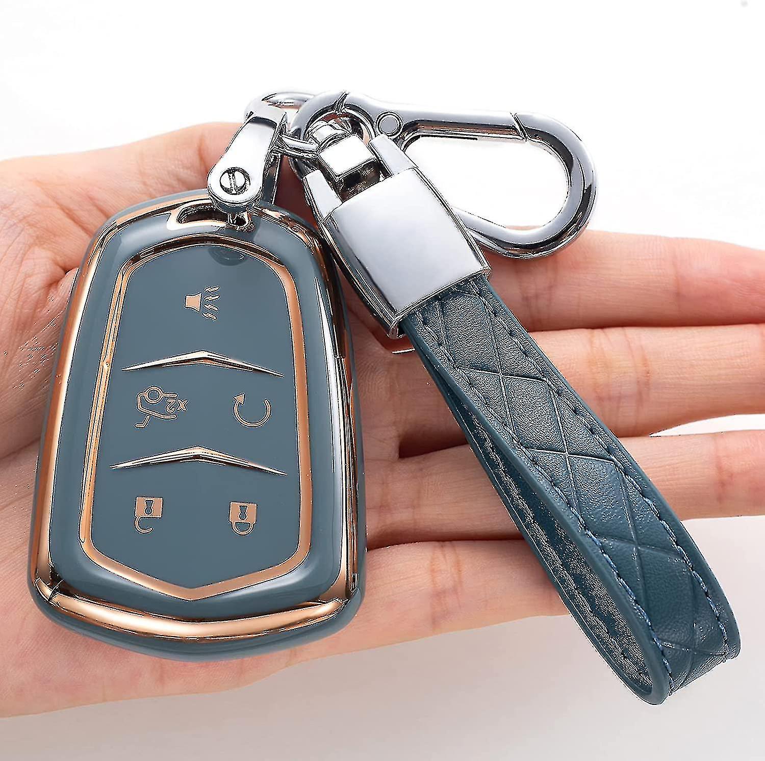 Key Fob Case For Cadillac, Key Fob Case For Cadillac Escalade Cts Srx Xt5 Ats Sts Ct6 5 Buttons Premium Soft Tpu 360 Degree Full Protection 2015-2