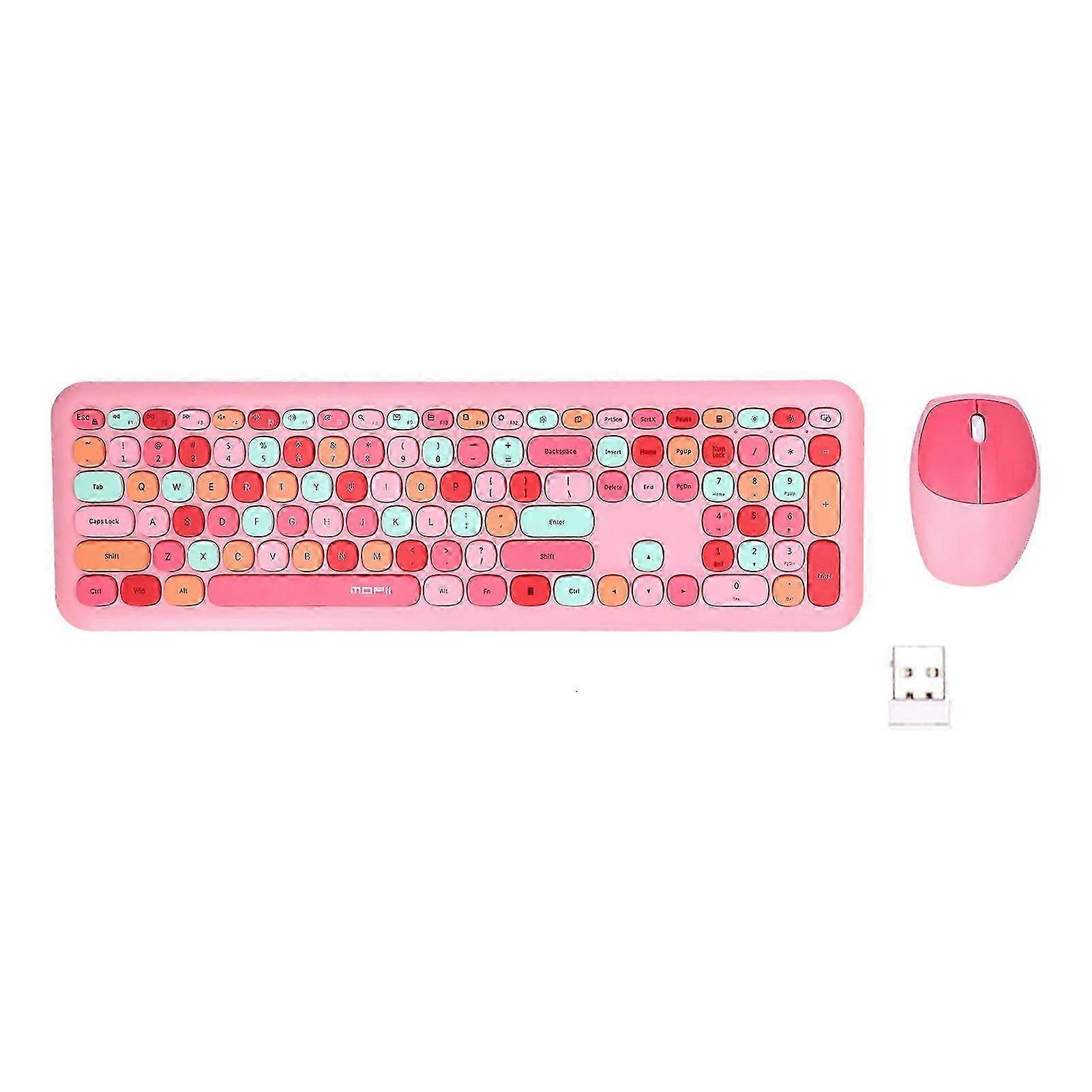 Keyboard Mouse Combo 2.4G Retro Multi Color Mute Cover Wireless Keyboard and Mouse SetPink