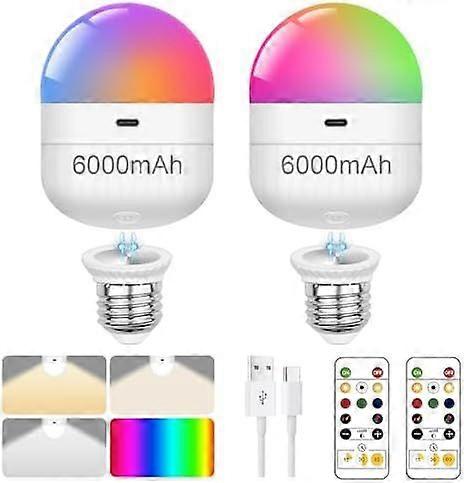 2 Packs USB Rechargeable Light Bulb with Remote, Dimmable 5W Magnetic Battery Operated Bulbs Timer and 3 Color Temperatures, Charging LED Bulb for Non