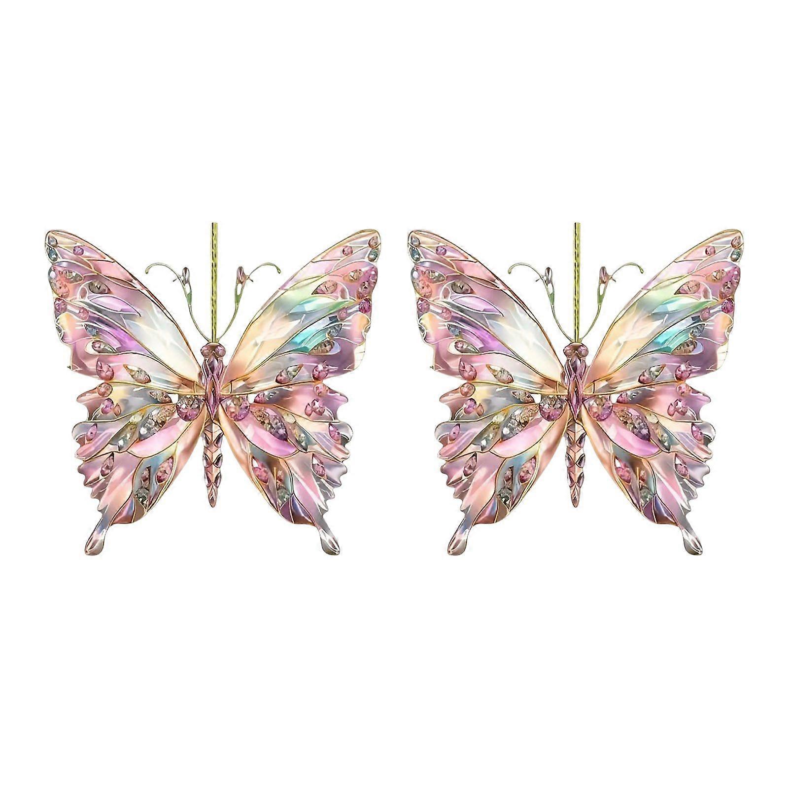 2Pcs Colorful Butterfly Car Pendant Faux Crystal Hanging Ornament for Rearview Mirror Rhinestone Art Kit for Car Charm Window Decor Gift for Car Enthu
