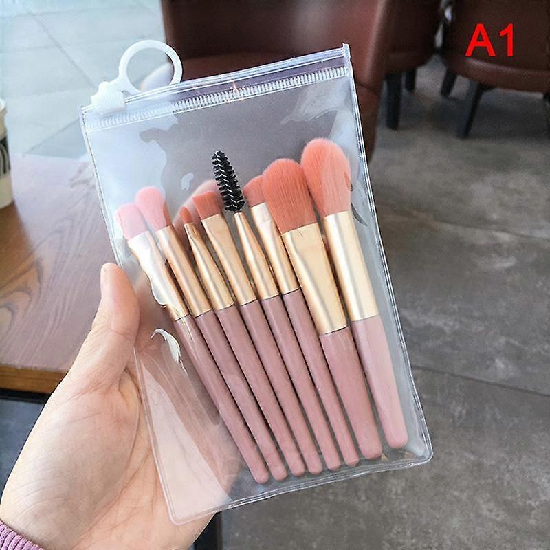 8 Pack Mini Professional Makeup Brush Beginners Matte Wooden Handle Portable Soft Brush