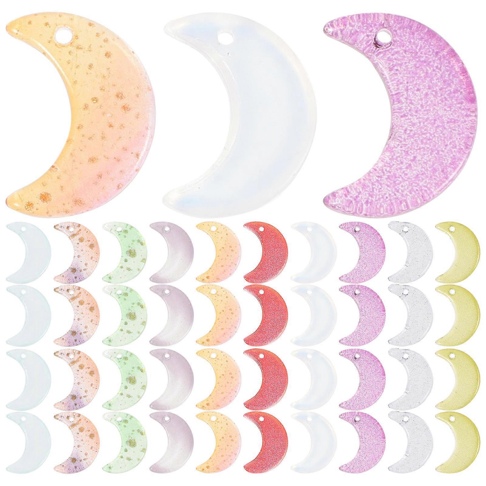 DIY Accessory 100Pcs Assorted Color Lightweight Glass Moon Crescent Charm for Jewelry Making