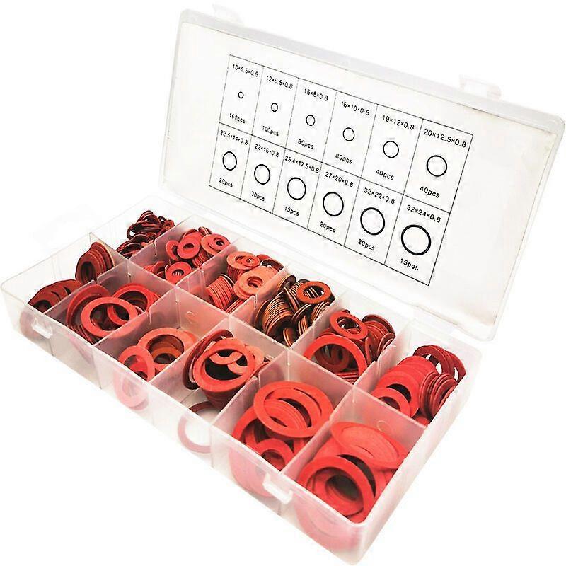 600pcs 12 Sizes Paper Fiber Steel Flat Washer Kit Red Washer Insulation Assorted