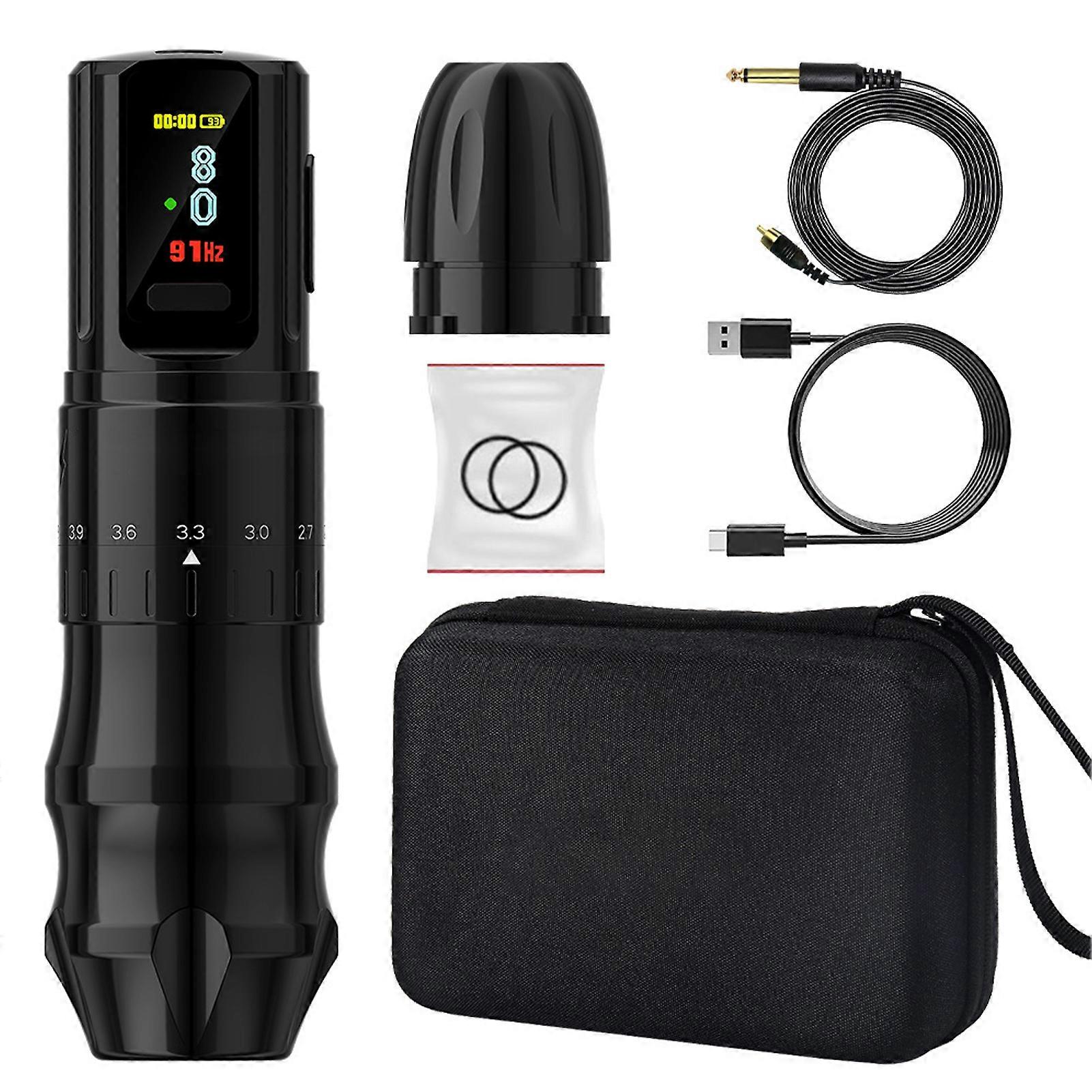 Black Wireless Tattoo Pen Kit with OLED Display, 2.4-4.2mm Stroke & 2400mAh Fast-Charging Battery