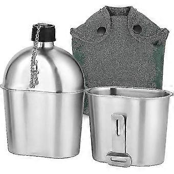 Kit de cantil militar com 2 peças de 1000ml e 600ml em aço inoxidável, conjunto de copos de cantil militar com bolsa protetora para acampamentos, caminhadas e mochilão ao ar livre