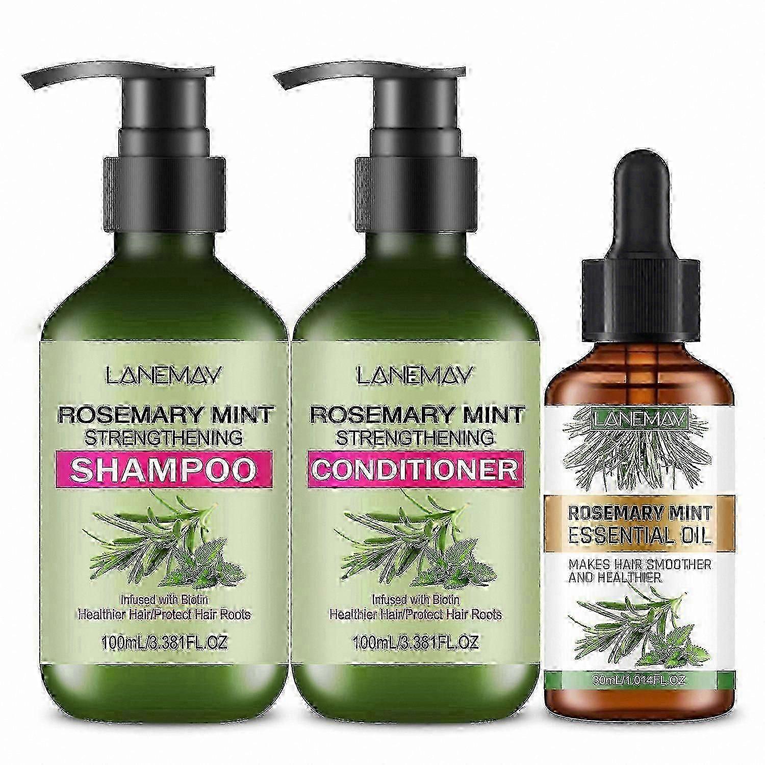 Strengthening Hair Care Kit with Rosemary Mint and Biotin for Healthier, Smoother Hair - Includes Shampoo, Conditioner, and Essential Oil Blend