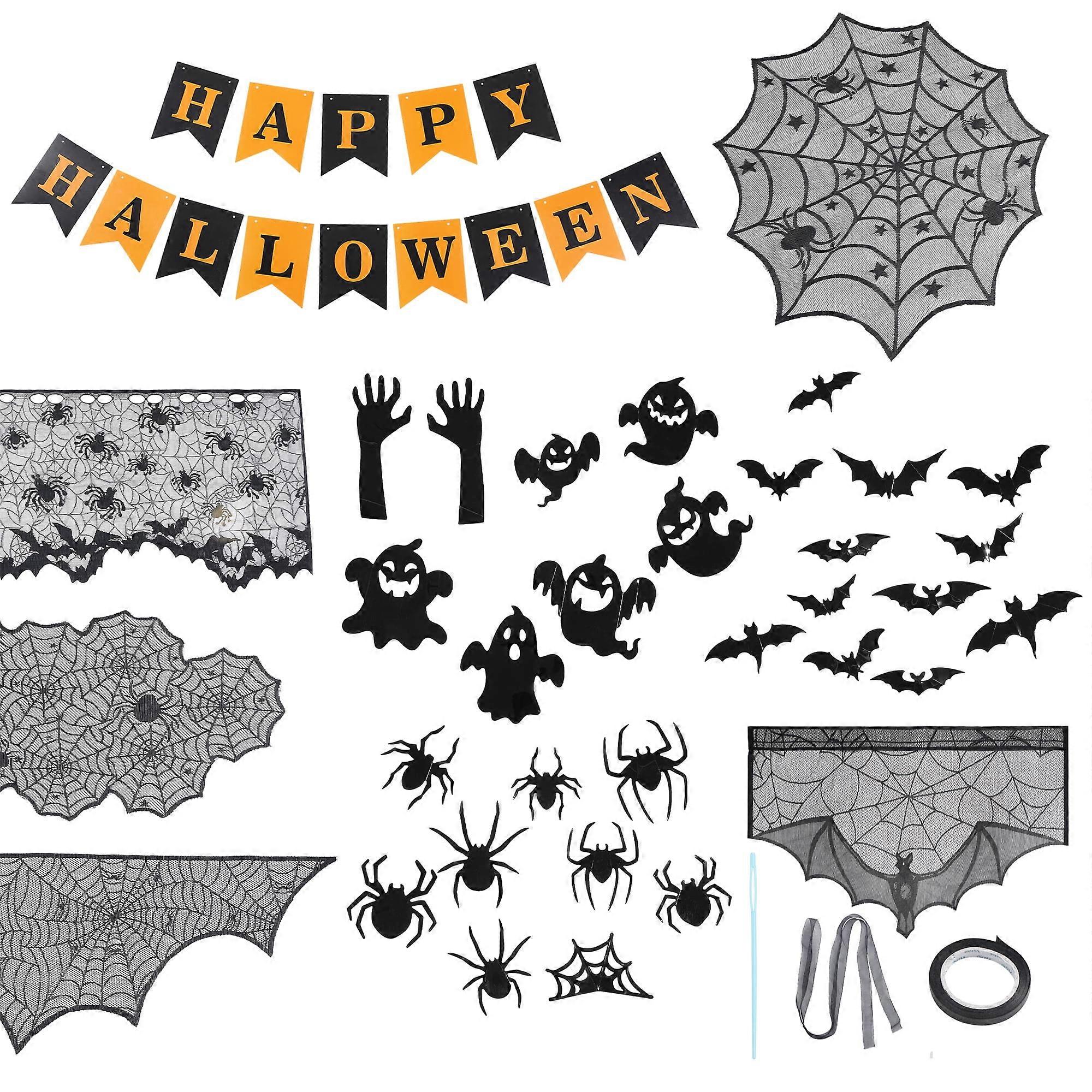 Halloween Indoor Decorations Set Spider Web Tablecloth Lampshade Kit