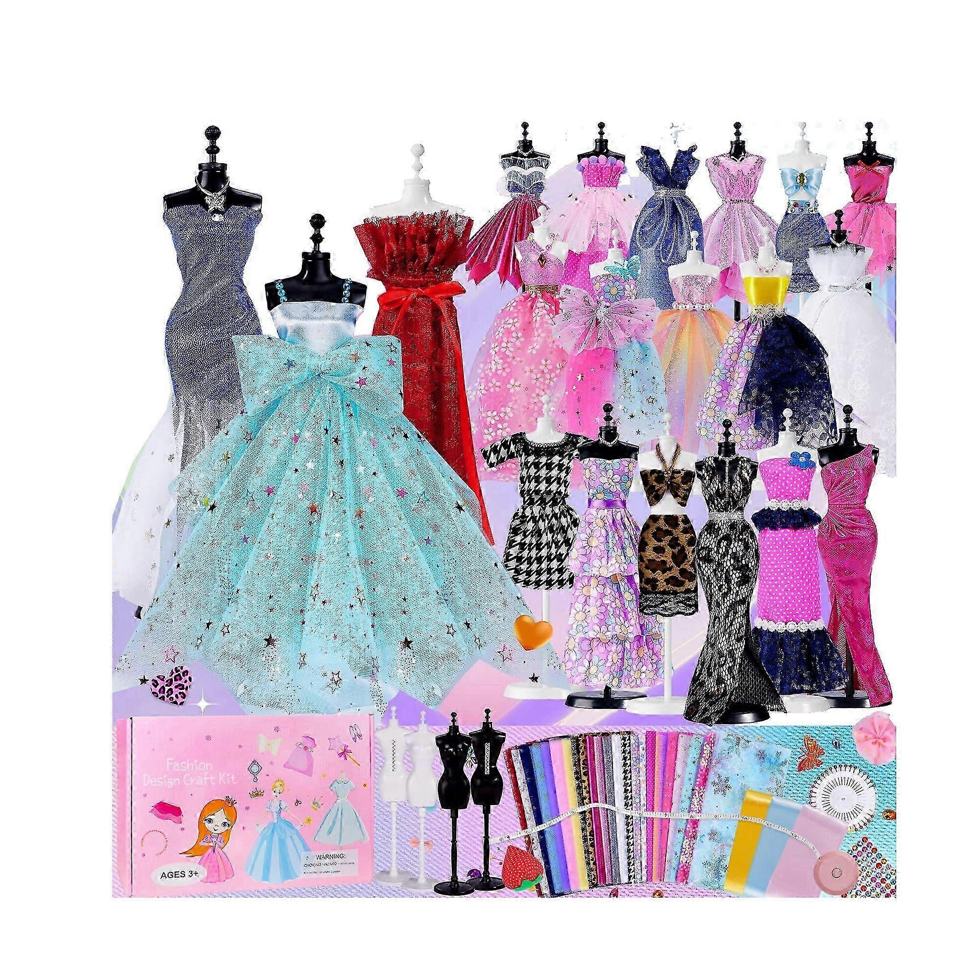 500+Pcs Fashion Designer Kit for Girls, Sewing Kit with 7 Mannequins, DIY Arts and Crafts Kit for Kids