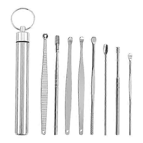 8Pcs/Set Earpick Kit Reusable Anti-Slip Stainless Steel Ergonomic Ear Spoon Set Ear Care Tool