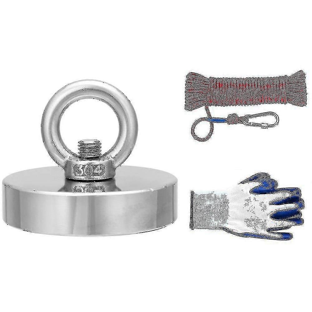 35-600KG Neodymium Fishing Salvage Recovery Magnet with 20M Rope and Gloves For Detecting Metal Treasure.Specifications:MAX Pull Force:35-600KG;Diameter:25/32/36/42/48/60/75/90/120mm;Material:NeodymiumMagnet;Rope Length:20m(Rope and Gloves Color is Random).Features:- The pulling force will maximize when one pulls vertical direction with surface magnets.- The Traction Force will be influenced by many factors: the material& 39;s material, effective contact area, the softness of the surface, to the direction of traction, temperatures, material type, thickness, flatness, friction levels , etc.), its quality (eg rust deli.very), its size (thickness plus total area), etc.- The big magnet is extremely strong, and must be handled with care to avoid injuries and damage to the magnets. Fingers and other body parts can get severely pinched between two attract magnets.- Strong magnetic attraction and easy to carry.Package Included:1 x Magnet;1 x 20 Meters Rope;1 Pair Gloves"