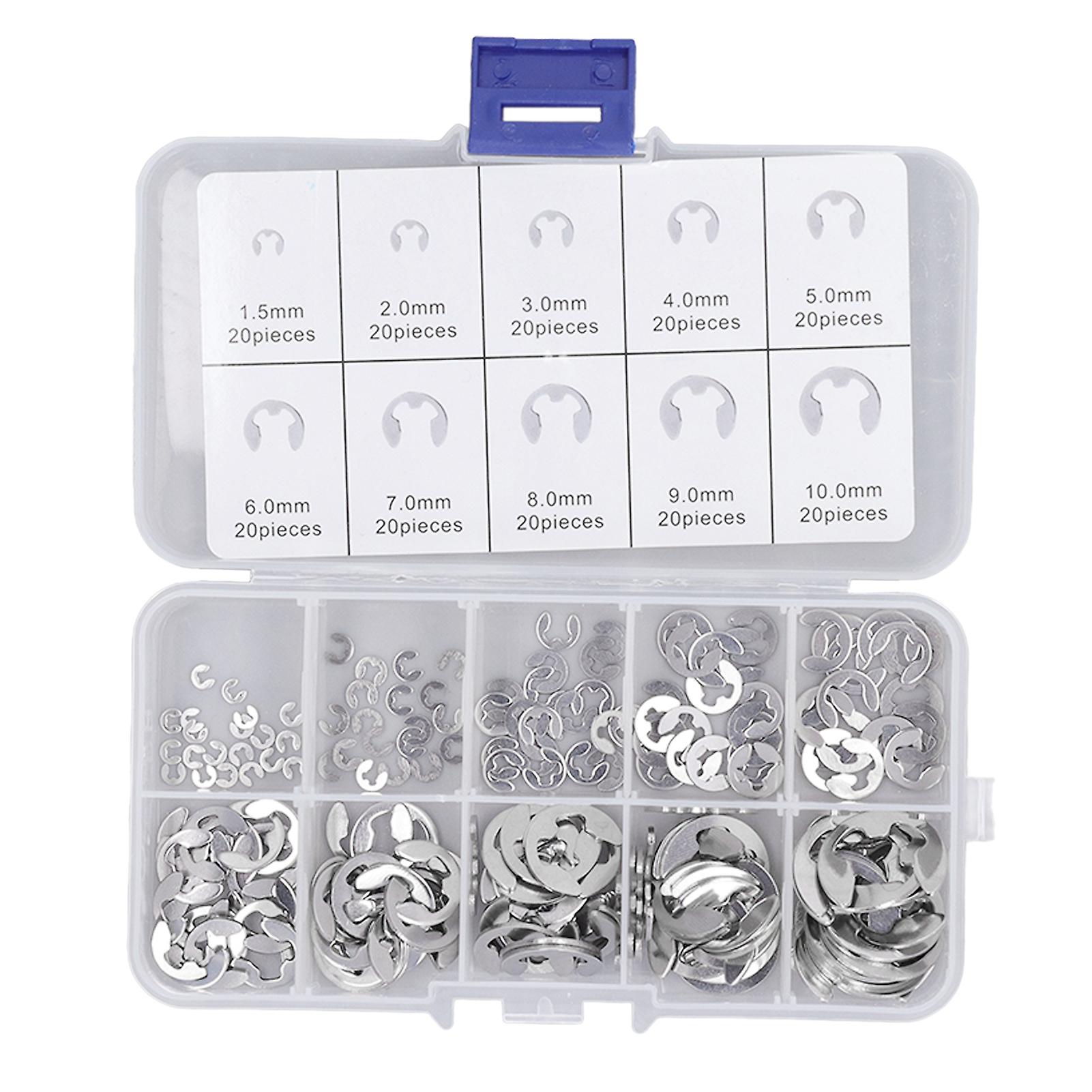 200PCS E Clip Assortment Kit - Stainless Steel External Retaining Circlip with Good Tension Strength for Bearing