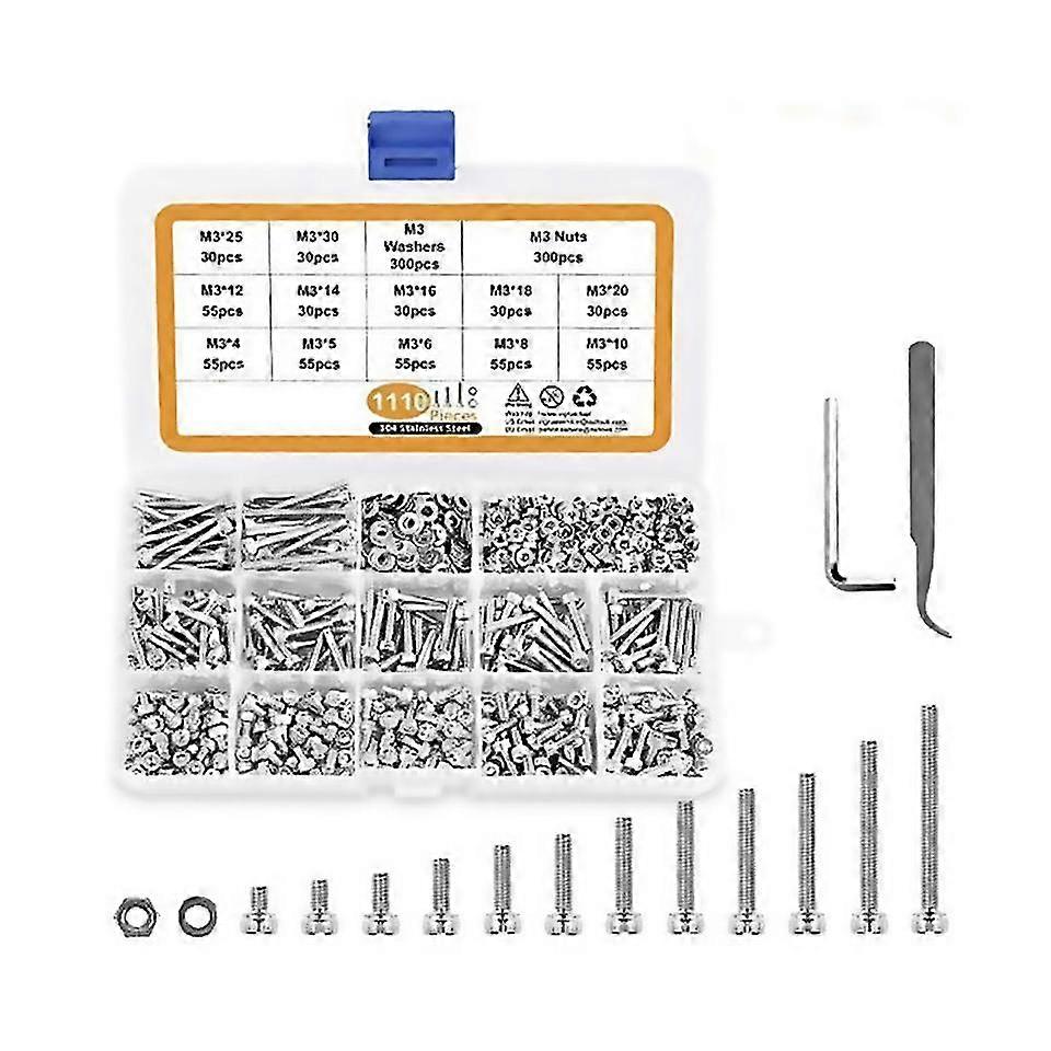 M3 Stainless Steel Screws Nuts Washers Assortment Kit With Hex Wrenches 1100 Pcs Hex Socket Button