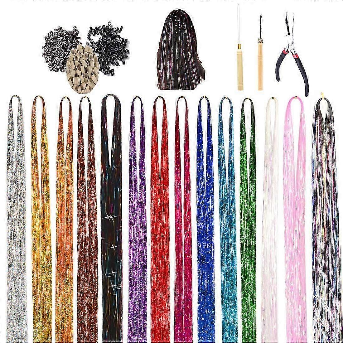 Hair Tinsel Kit, 47 Inches Glitter Heat Resistant Tinsel Hair Extensions Tensile with Hair Beads Wigs Tools & Accessories Tools Gift Set for Halloween