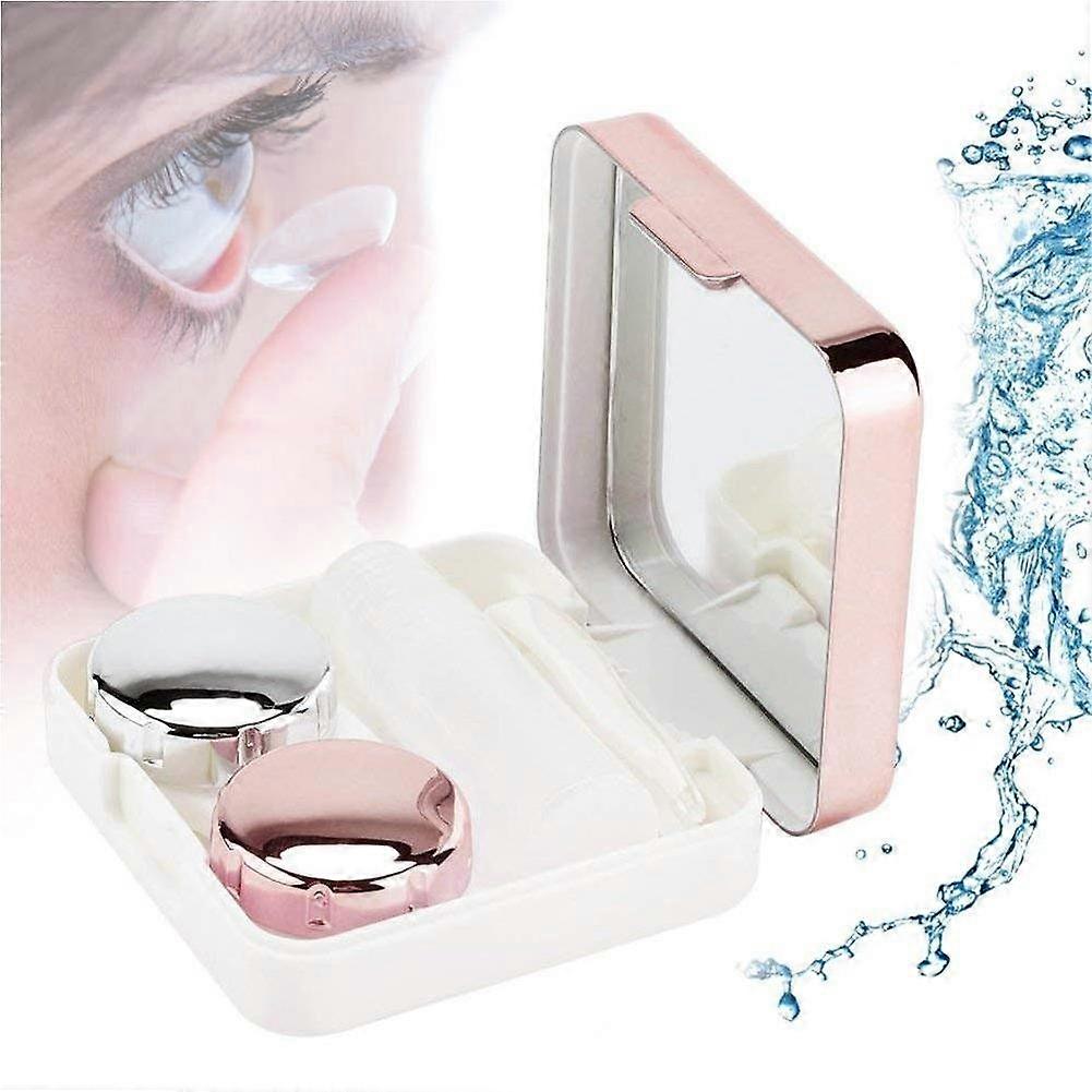 Contact Lens Travel Kit with Mirror, Reflective Cover Case Holder, Compact Lightweight Pink Box