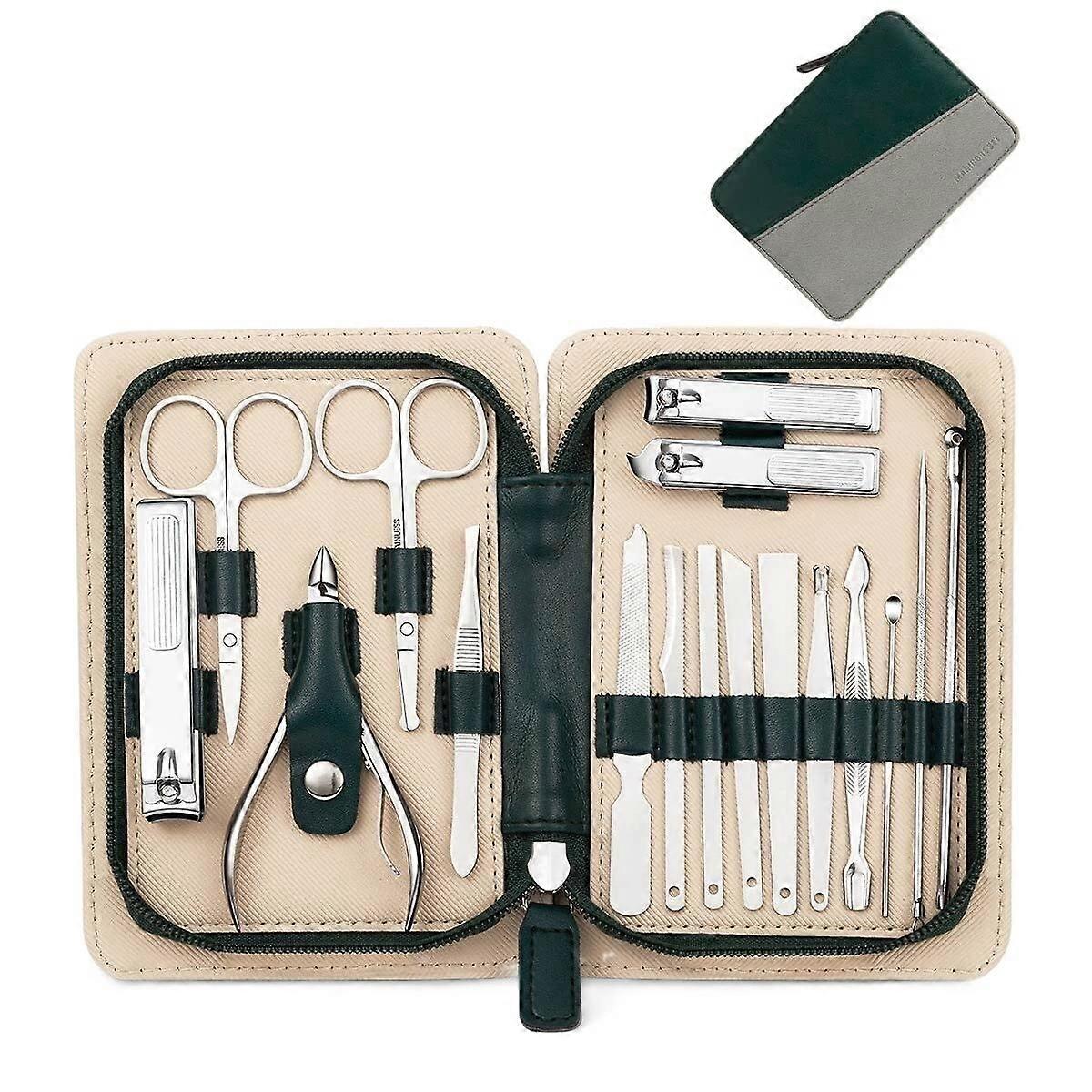 17 Pcs Stainless Steel Manicure Set Travel Kit with Nail Clippers, Cuticle Scissors, and Grooming Tools