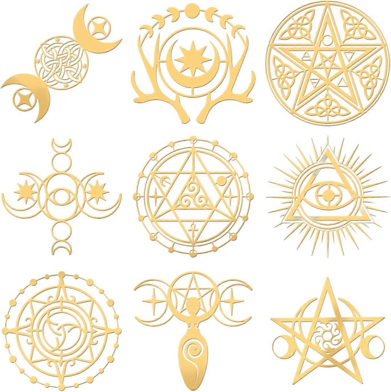 DIY 9pcs 1.6x1.6 inch Tarot Theme Stickers Self Adhesive Metal Stickers Witch Symbols Divination Stickers Golden Epoxy Stickers for DIY Scrapbooks Epo