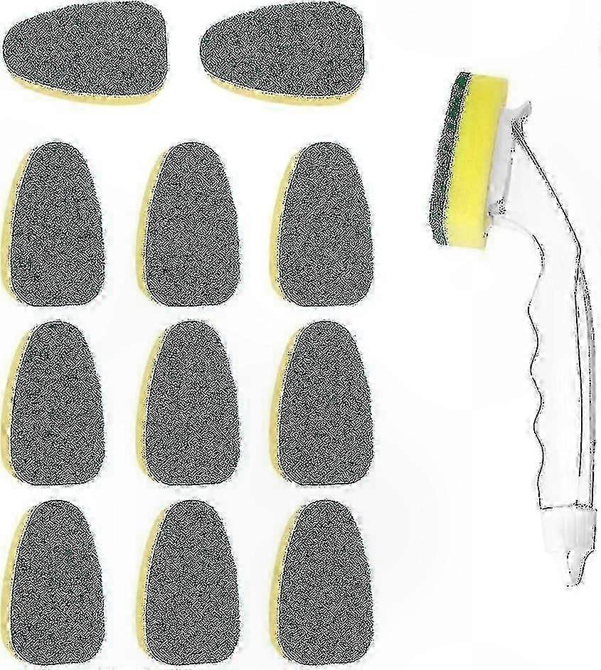Cleaning brush with handle is widely used for cleaning kitchens, bathrooms, bathtubs, toilets, and more. Dish sponge with handle makes cleaning easier. The long handle allows cleaning of mugs, jars, and other hard-to-reach areas. The sponge brush is absorbent, generates foam easily, maintains shape, and helps remove stubborn stains. Material: Sponge. Size: 9.84 x 2.16 inches. The dish sponge with handle is made of durable and soft fiber. Package includes: 1 x Brush sponge head 6 x Replacement sponge heads