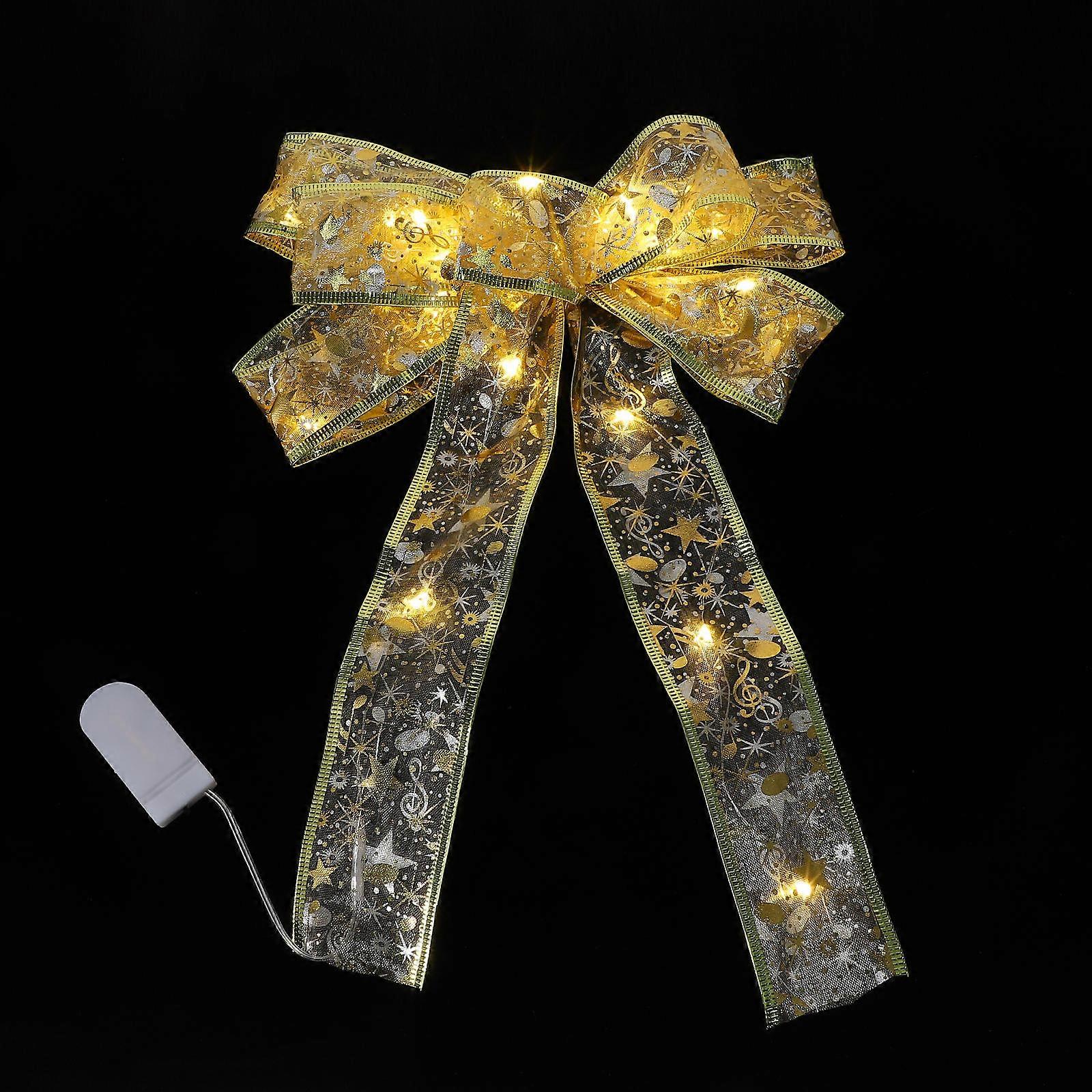 Bow Led Decor 1Pc Christmas Bowknot With Light Indoor And Outdoor Use Golden Polyester For Home Decoration