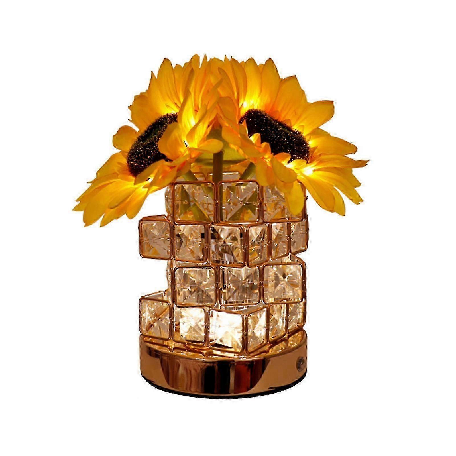 Sunflower Table Lamp, Dimmable Flower Lamp Lamp, Battery Operated sunflower Table Lamp, Artificial Flower Lamp with Glass Vase, Small Lamp for Bedroom Bedroom Living Room, Birthday Gifts for HerFeature:Quantity: 1PcsMaterial: GlassColor: Silve-rProduct size: 12x12x22cm /4.72x4.72x8.66inPacking size: 26.5x18.5x15.5cm /10.43x7.28x6.1inNet weight:700g/1.54lbGross weight:821g/1.8lbDescrition:LED ARTIFICIAL FLOWERS LAMP - LED light source and high simulation plant combination, through this ingenious design so that the simulation flower has a new function of light source, gives the simulation flower a new vitality. Our LED flowers are both elegant bonsai, with the spirituality of flowers and natural ambience; at night is a soft and comfortable light flower table lamp, adding warm and romantic colors.UNIQUE CRYSTAL VASE DESIGN - Realistic sunflowers with green leaves are fixed in a crystal glass vase, this good glass vase shows the shape of a flower , it also has the unique pattern of flowers printed on its. When the LED lights are Open, the light is dispersed around through the crystal glass, and the overall shape looks very beautiful and full of the vitality of flowers.Rechargeable & & Battery Operated Lamp: sunflower flower lamp Built-in 1200mAh battery, charges anytime, sunflower lamp can be movingfreely, no longer worry about a power outage & wasting money on battery. The fully charged battery of flower lamp can work up to 8 hrs(at minimum brightness), sunflower flower lamp accompany U all sweet night. The natural and elegant sunflower table lamp appearance allows it to be placed anywhere in the house. The sunflower table lamp is the decor for a candlelit dinner.sunflower table lamp creating an unique fascinating effect: Romantic, , Peaceful. A soft mood light. Soft pliable sunflowers, stems, and leaves .Suitable as a romantic sunflower table lamp, bedside lamp and office lamp to spruce up your bedroom, living room, dining room, closet, office, guestroom or study room.GIFTS FOR HER: sunflower flower lamp is a, romantic and beautiful small lamp, to light up your body and mind. The natural & elegant sunflower table lamp allows it to be placed anywhere in your house. sunflower flower lamp is the birthday gifts/home gifts/cute gifts for her/your daughter, mom, wife, granddaughter, grandmom. Package Content:1 x Table Lamp