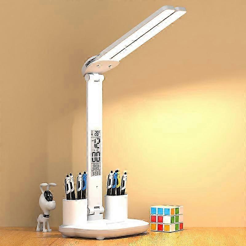 LED Desk Lamp USB Dimmable Touch Foldable Table Lamp with Calendar Temperature Clock Night Light for