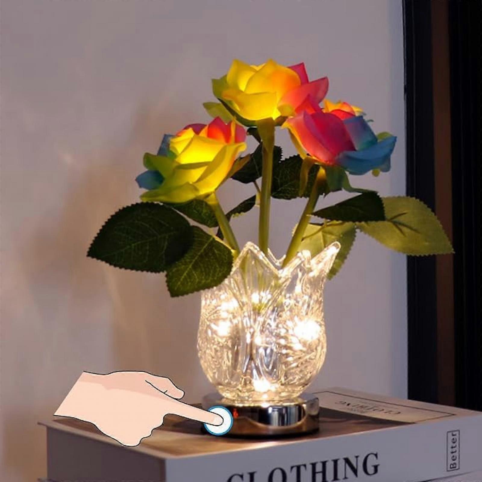 LED Artificial Flowers Small Table Lamp Night Light,Cordless Touch Lamp for Home Bedroom Living Room Desktop Decor Gift (Rainbow)
