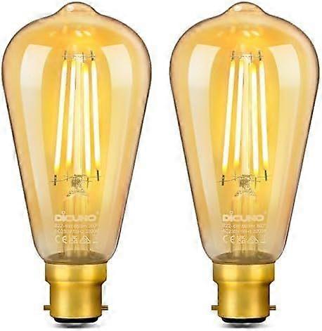 DiCUNO ST64 Vintage Light Bulb B22 6W, 60 Watt Equivalent, Antique/Retro Amber Glass Lamp, 2200K Warm White, Not-dimmable, Bayonet LED Filament Lamp S