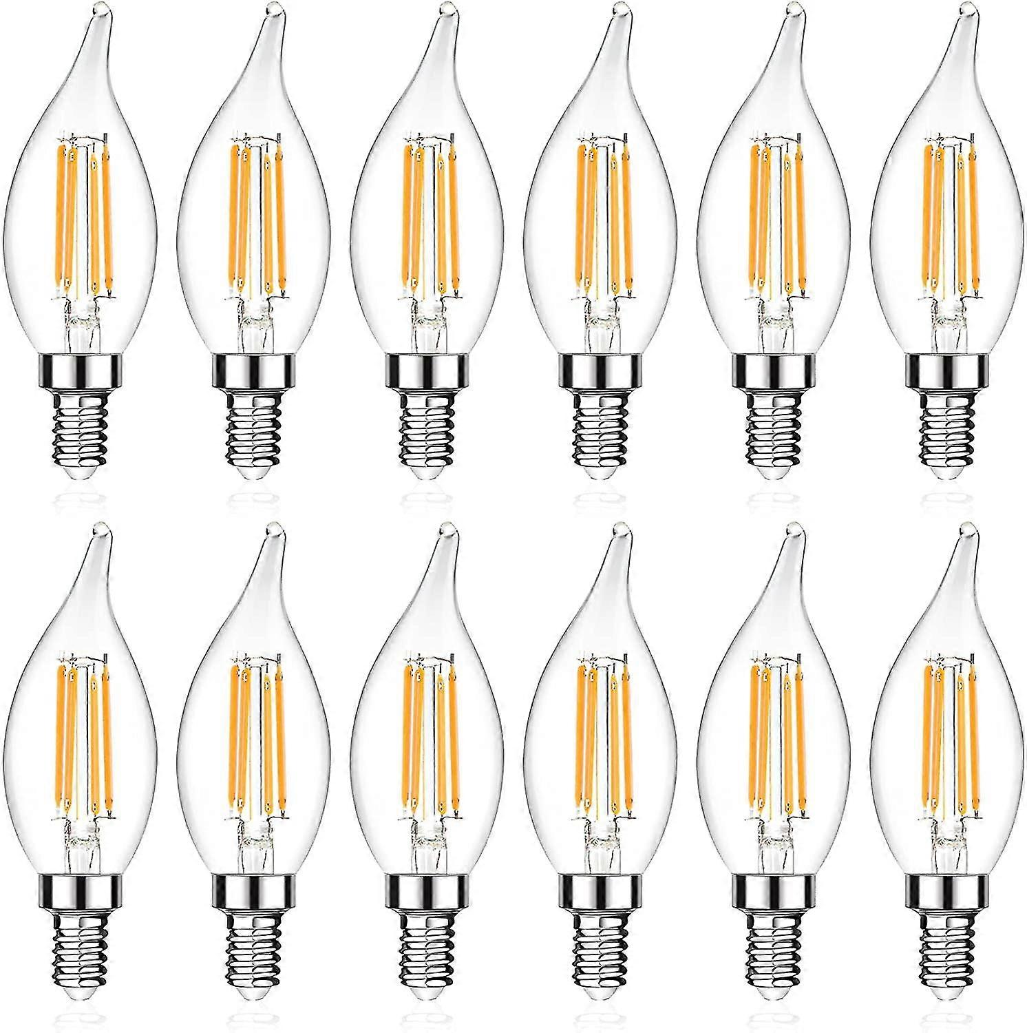 E12 Candelabra LED Light Bulb, Flame Tip Decorative LED Filament Candle Bulb, E12 Base, Non-Dimmable, Pack of 12 Tw