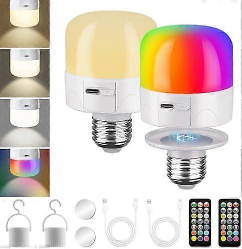 USB-C Rechargeable Light Bulb with Remote, 3000mAh Smart RGB Bulb, 9+3 Color Temperature, Dimmable & Timer, E27 Magnetic Base with Hook, Non-Hardwired