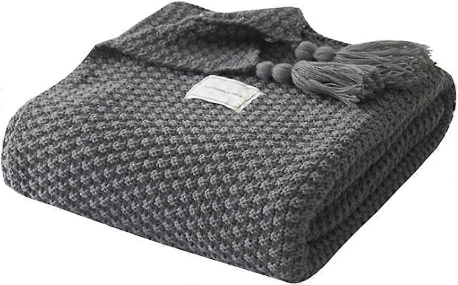 Nordic Style Knitted Blanket Throw with Tassel Pom Poms 110x150cm Knitted Sofa Bed Blanket Throw