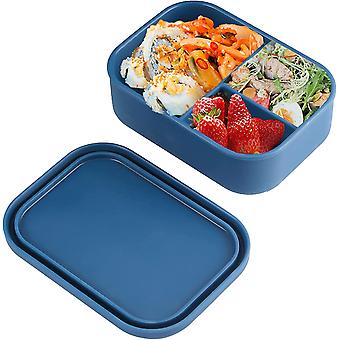 Silicone Bento Lunch Box for Adults, 3-Compartment Leakproof Silicone Lunch Comtainer, Safe in Microwave, Dishwasher & Freezer (Blue)