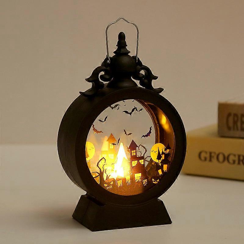 Black Halloween Portable LED Candle Lantern 3 Pack Castle Pumpkin Witch Design