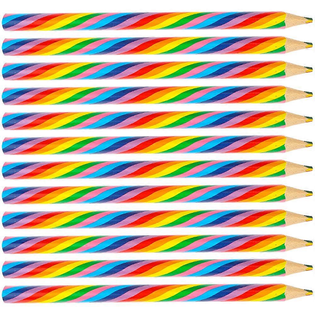 Kids Pencils 12Pcs Cartoon Rainbow Pencils Student Rewards Writing Assorted Color Ergonomic Design