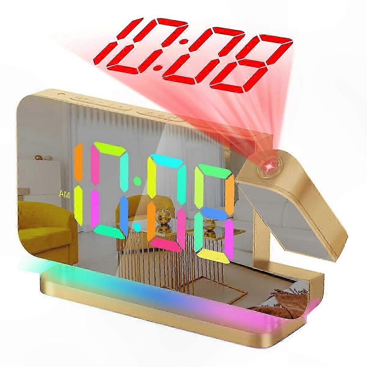 Large Display LED Mirror Clock with Rotatable Projector and Night Light Function