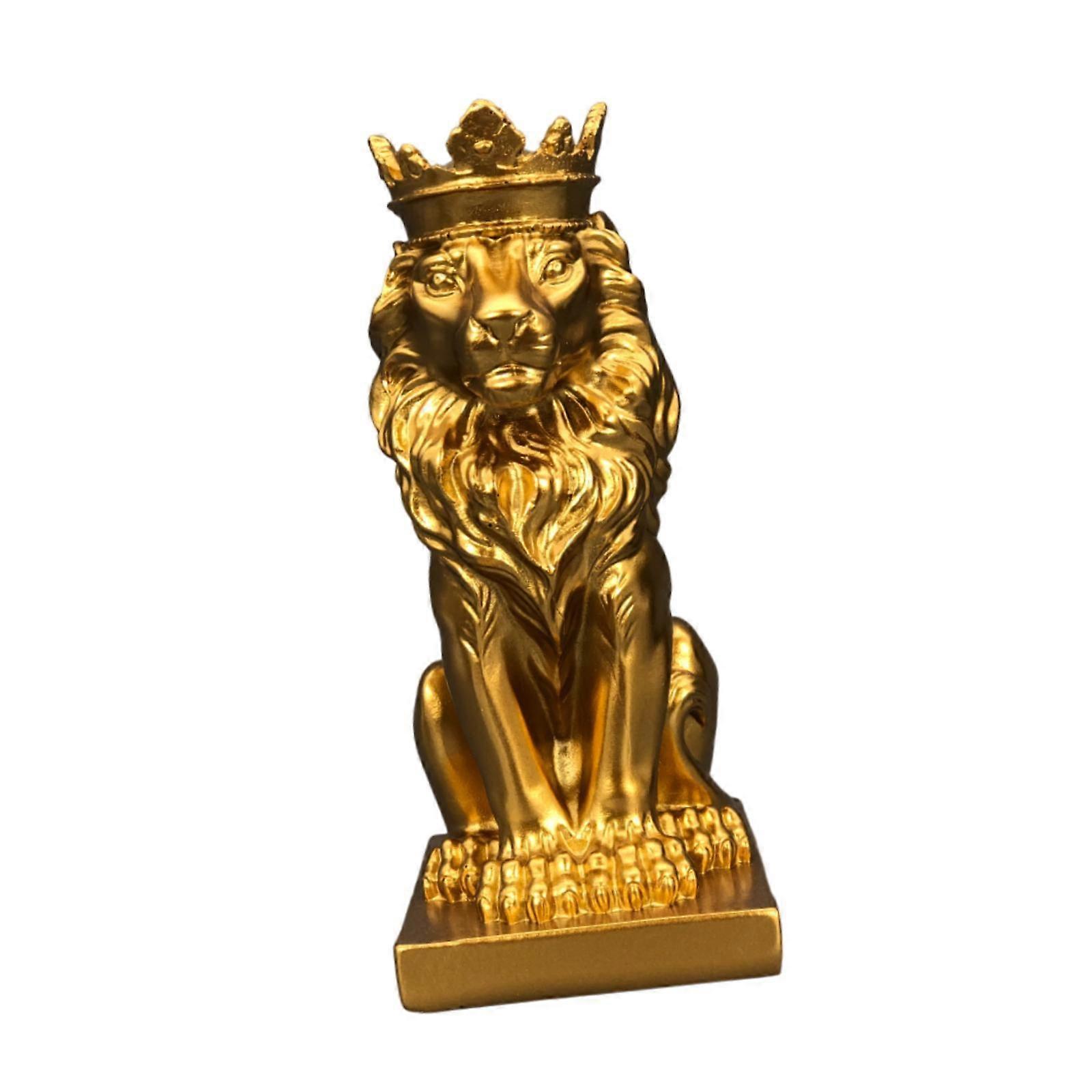 Lion with Crown Figurine Tabletop Ornament 5.7inch Tall for Hotels Versatile Golden