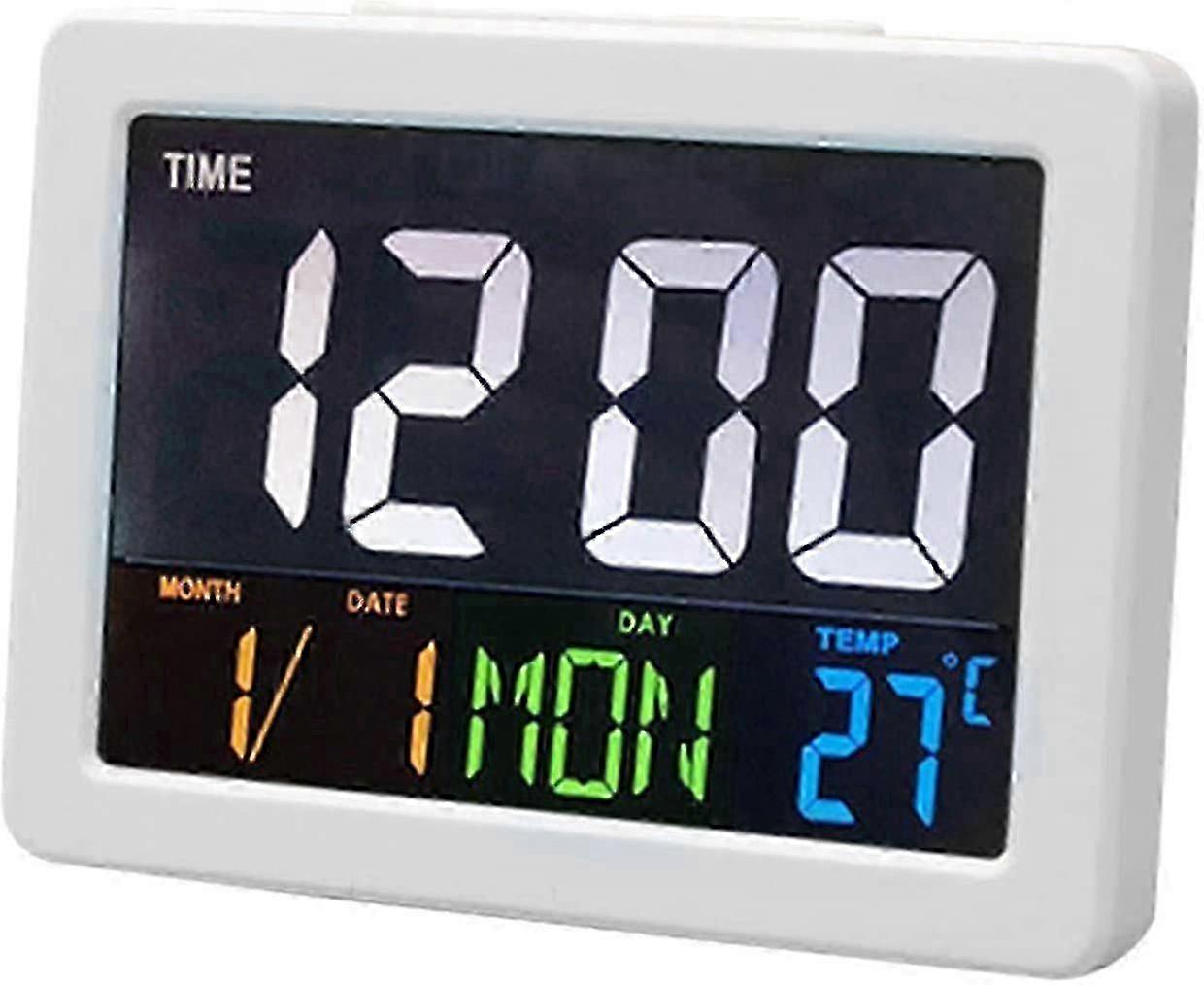 Led Digital Alarm Clock, Electronic Travel Alarm Clock with Calendar & Temperature Snooze Function Battery Alarm Clocks Bedside with 8 Alarm