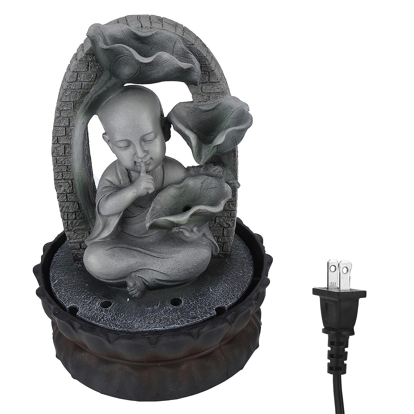 LED Resin Buddha Tabletop Waterfall Fountain Indoor Relaxing Home Office Decor with US Plug 110V Calm Ambient Light