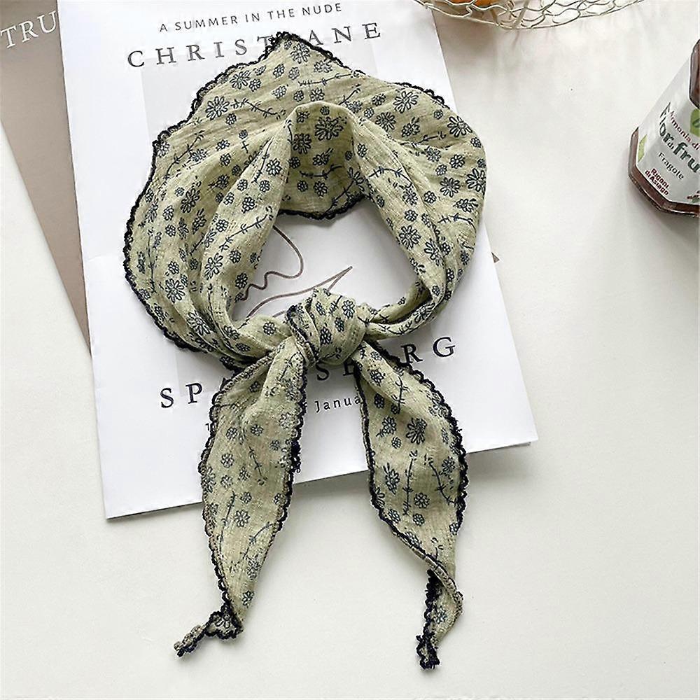 Lightweight Cotton Linen Scarf Korean Style Vintage Neck Scarf Floral Triangle Scarf for Women