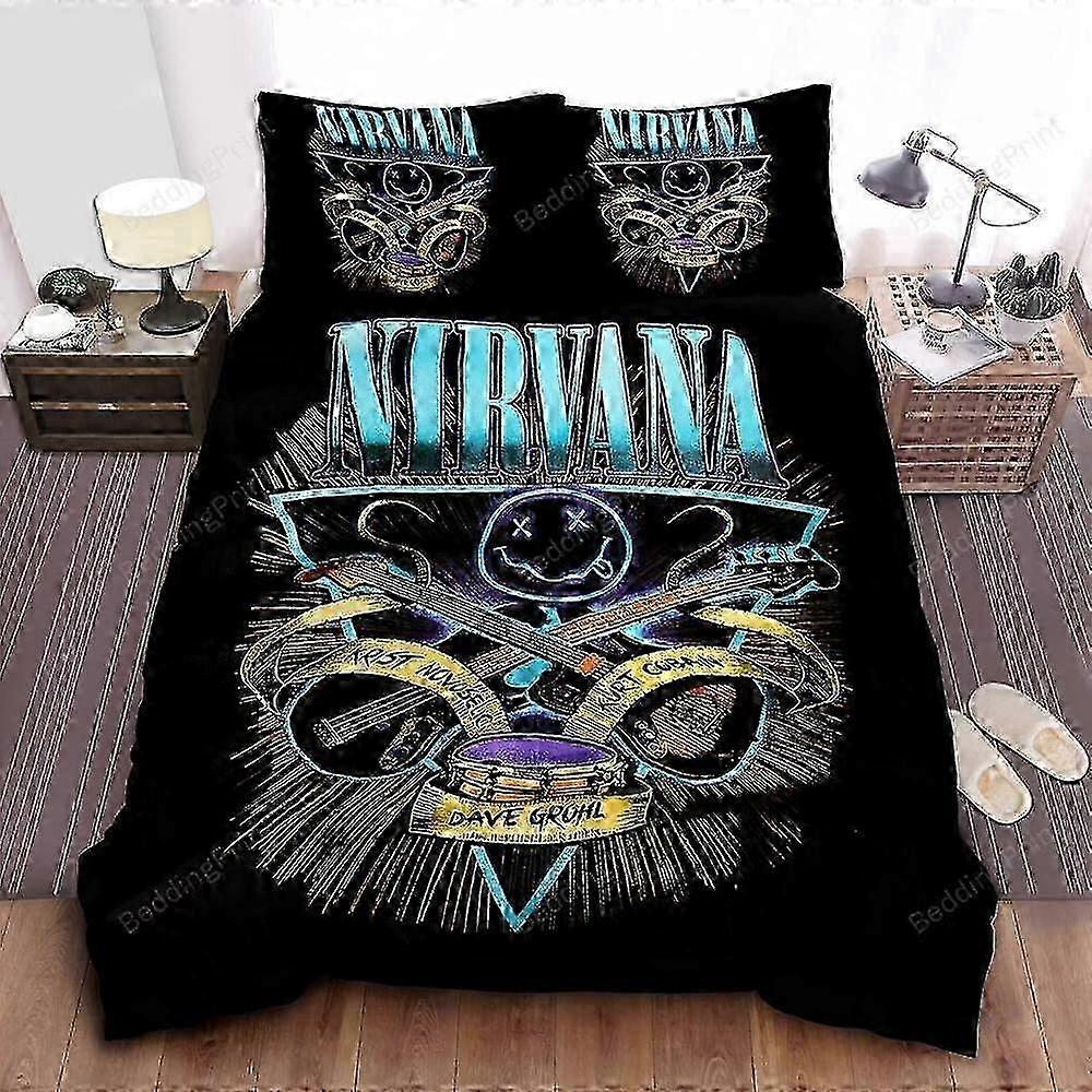 v5065 Bed Sheets Nirvana Logo With Drums Guitars Duvet Cover Set Soft Home Textiles Bed Sheets IU5065 26s