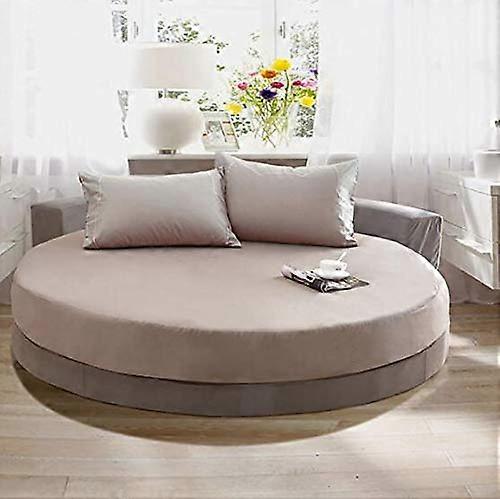 Round Cotton Fitted Bed Sheet Solid Color Mattress Cover for Circular Beds 180x180cm Silver Grey