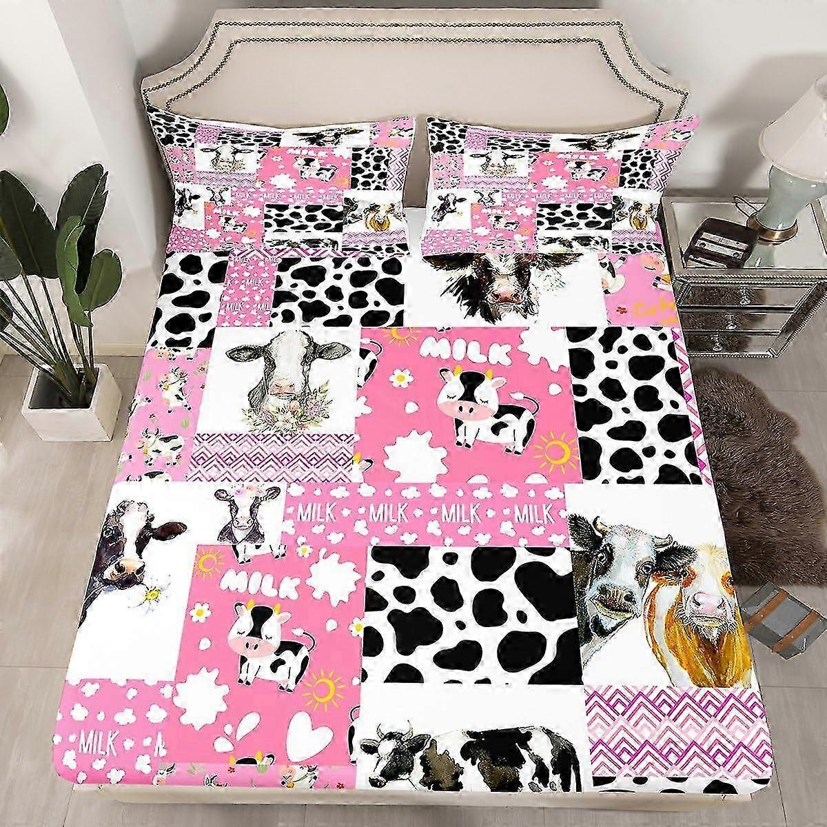 2025 Cute Cow Print Twin Fitted Sheet for Room Decor with Deep Pocket Size