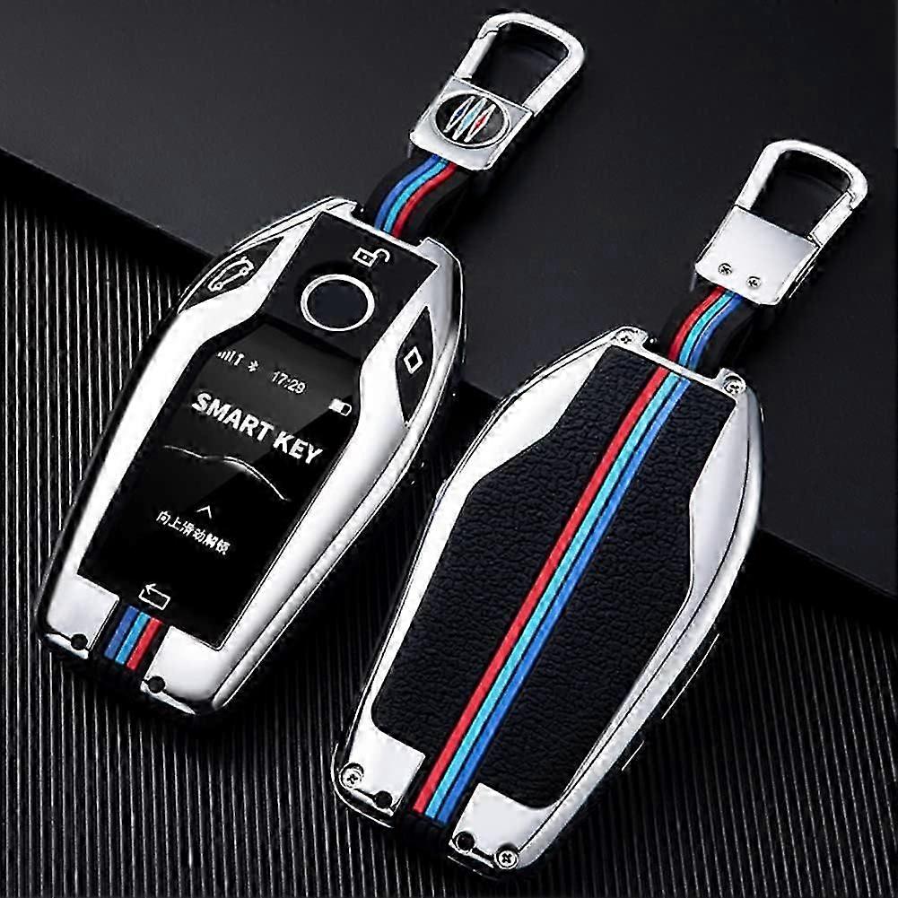 Zinc Alloy + Silicone Car Key Cover Cases fit for Bmw LCD Screen Keyless Auto Accessories 360 Water Proof Protect with Fluorescence (Matt color)