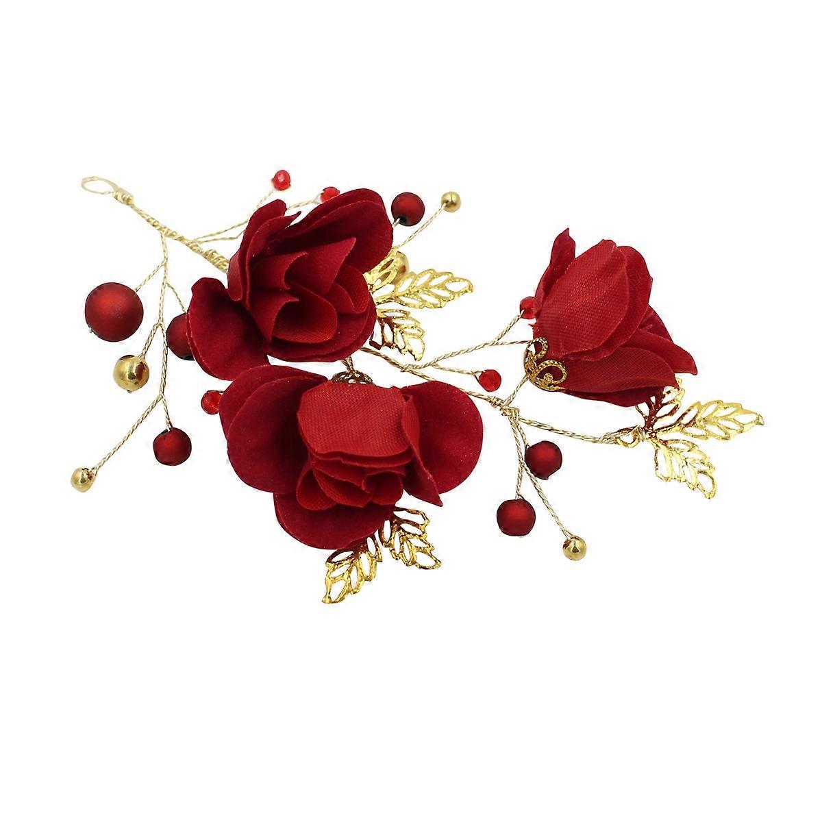 Beautiful Bridal Headwear Wedding Accessory for 3Pcs Red Rose Headdress