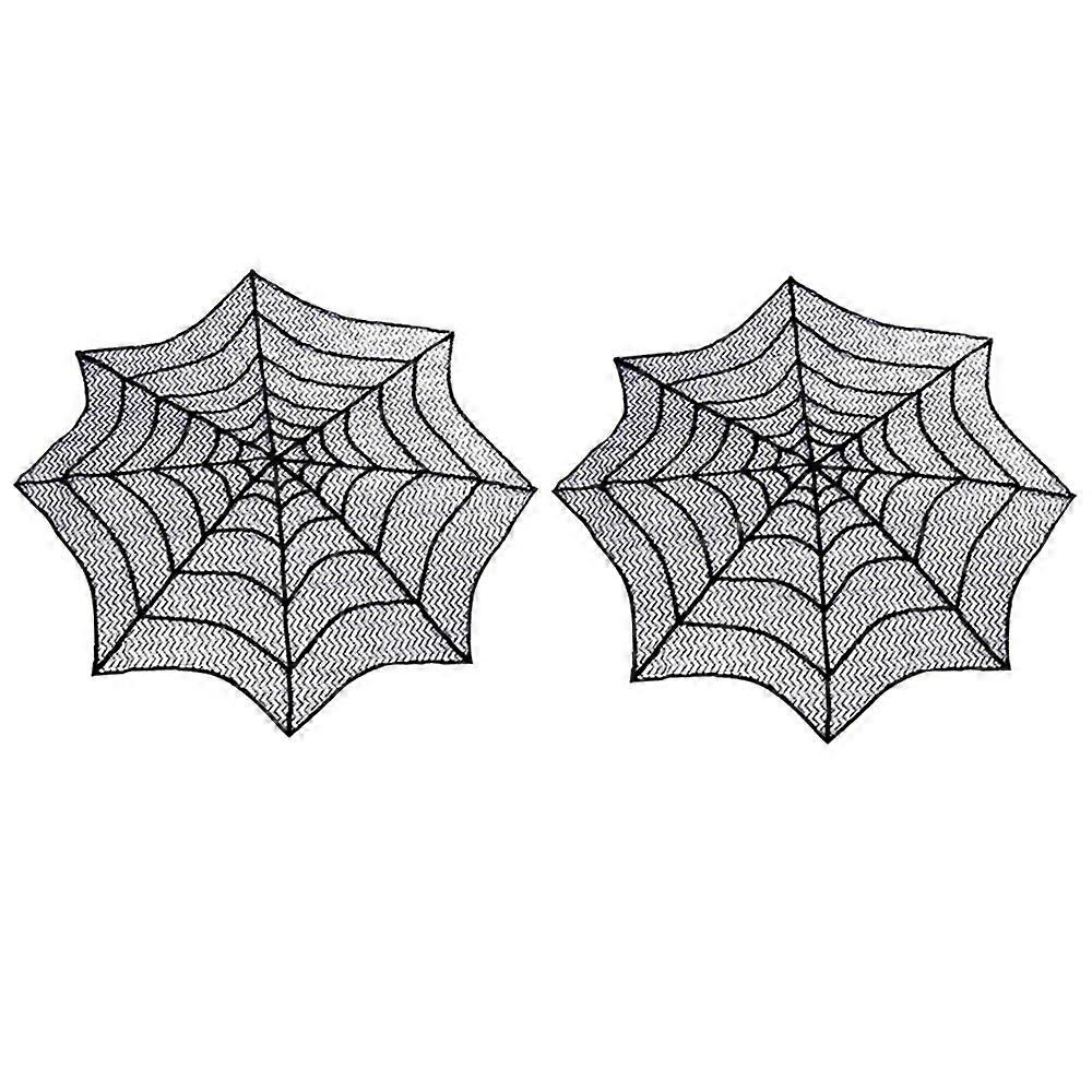 LINJOU Lace Spider Web Halloween Tablecloth with 2pcs, 30-Inch Round Table Topper