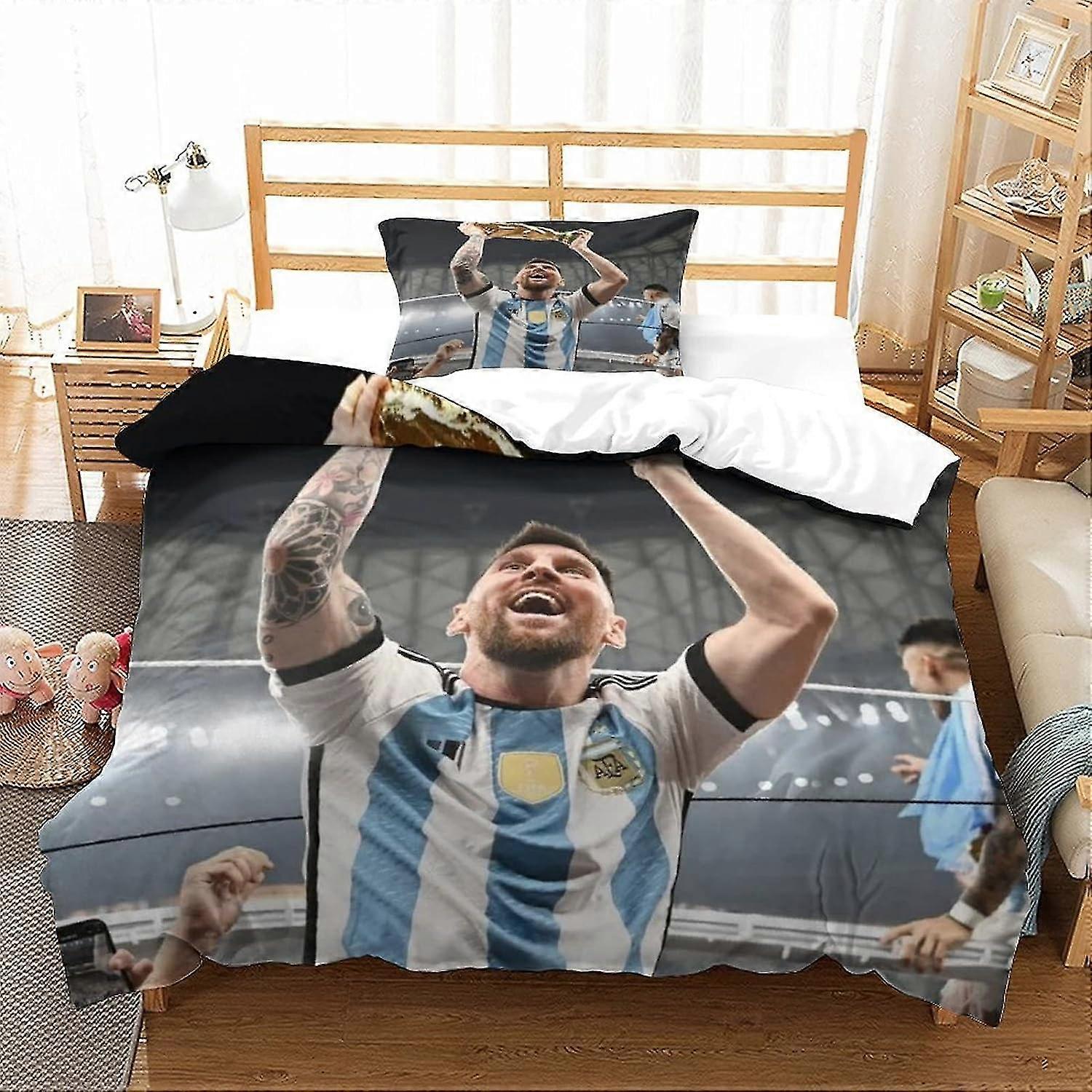 Lionel Messi Rinted Bedding World Cup Football Superstar World Cup Trophy Duvet Cover with Zipper Closure Soft Microfiber Quilt Cover Boys And Girls S
