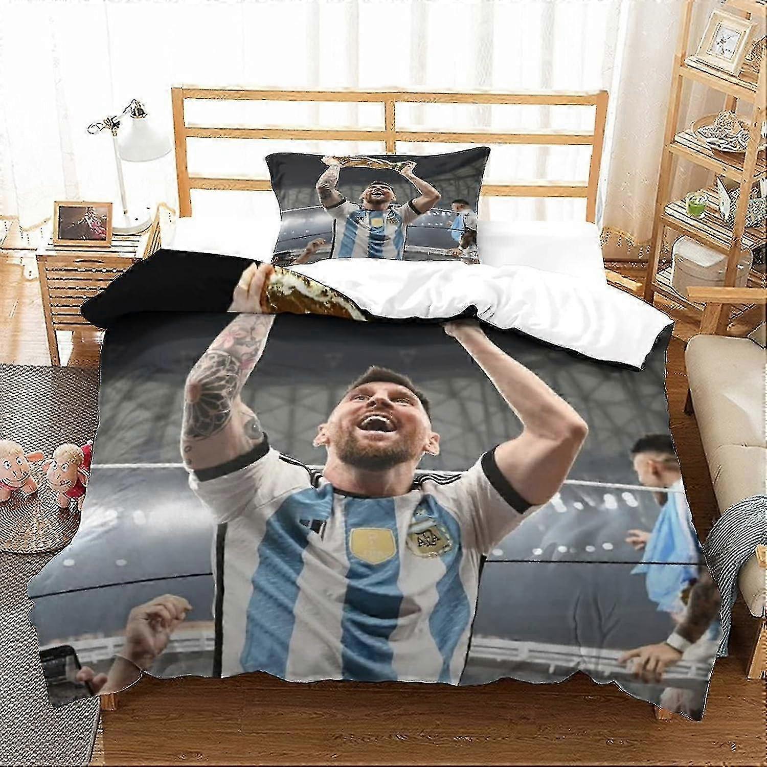 Lionel Messi Rinted Bedding World Cup Football Superstar World Cup Trophy Duvet Cover with Zipper Closure Soft Microfiber Quilt Cover Boys And Girls S
