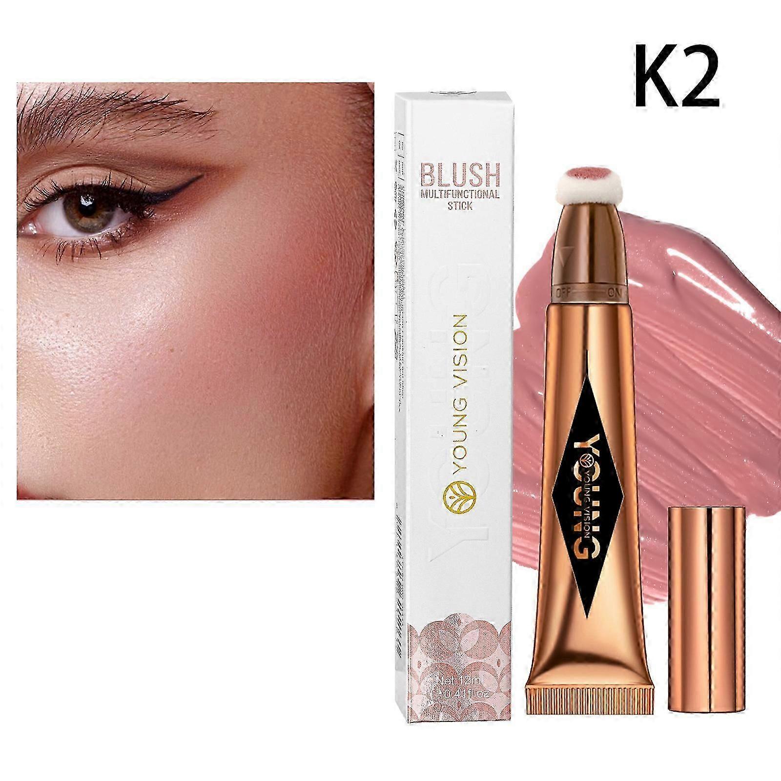 Liquid Contour Blush Stick with Cushion Applicator, Contour Beauty Wand, Long Lasting Lightweight Blendable Cream, Smooth Natural Matte Rouge Liquid
